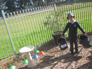 “If you build it, they will come!” Rain that is … the rain gauge had just been installed (thanks, Mr Fuller) and the heavens opened … 164mls has been recorded, over two occasions! A bird was happy to have a fresh rain water drink from the Birdbath! Also, it was a good time to replant one Wicking Bed with Carrots, Beetroot and Chives and to start preparing the other two, by digging-over and adding compost. A few left-over peas were discovered, and eaten, in the process! The Term 3 Environment Team was busy settling into their new roles, keeping the Crunch & Sip on the move!
